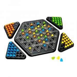 O Jogo dos Triângulos é um jogo de tabuleiro estratégico para 2 a 4 jogadores, onde o objetivo é formar e encaixar o máximo de triângulos possível no tabuleiro, usando elásticos e pinos. Vence quem conseguir formar o maior número de triângulos e colocar todos os seus pinos no tabuleiro primeiro. Como jogar: