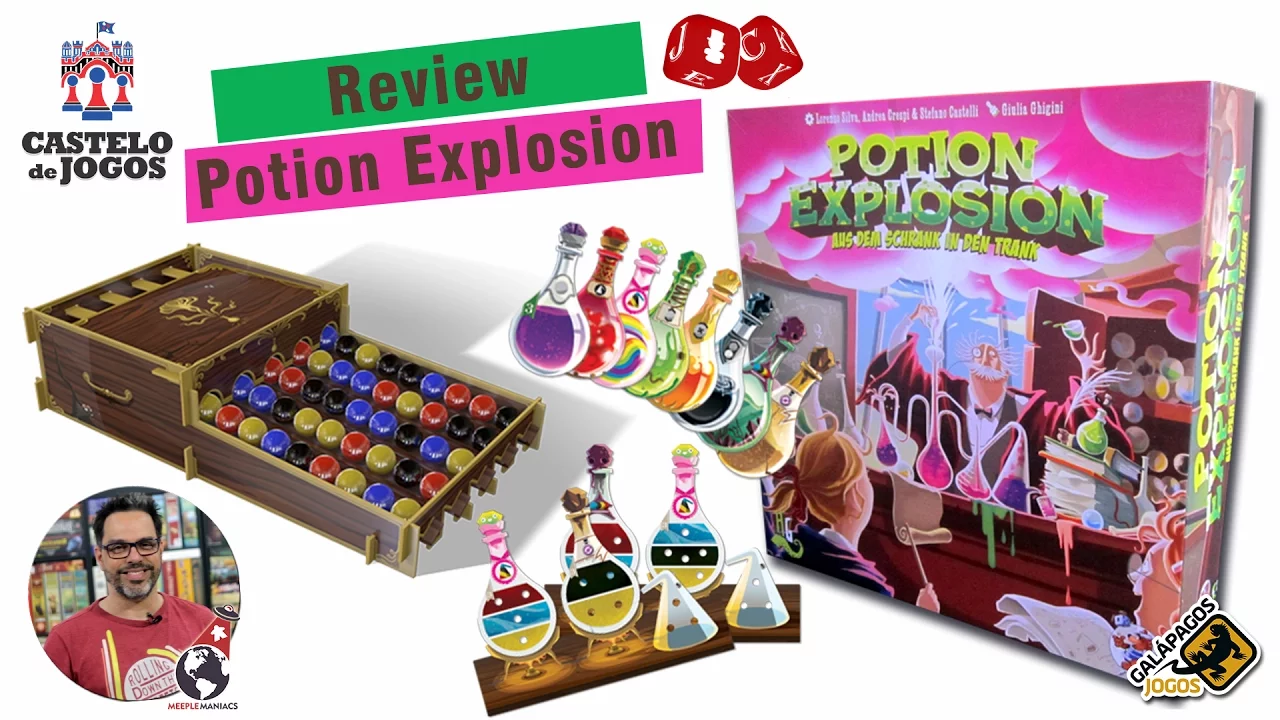 Potion Explosion é um divertido jogo de preparação de poções mágicas para 2 a 4 jogadores. Nele, os participantes competem pelo título de "Aluno do Ano" nas "Provas Finais de Poções", tentando produzir as melhores poções em menos tempo!